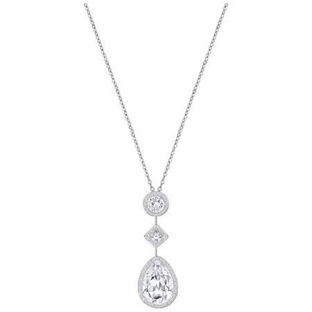 スワロフスキー『Folk ペンダントです。ユニークでエレガントなロジウムコーティングペンダント。ラウンド型やスクエア型、ドロップ型のクリアクリスタルをあしらい、どんな装いにもフレッシュな輝きをプラスします。