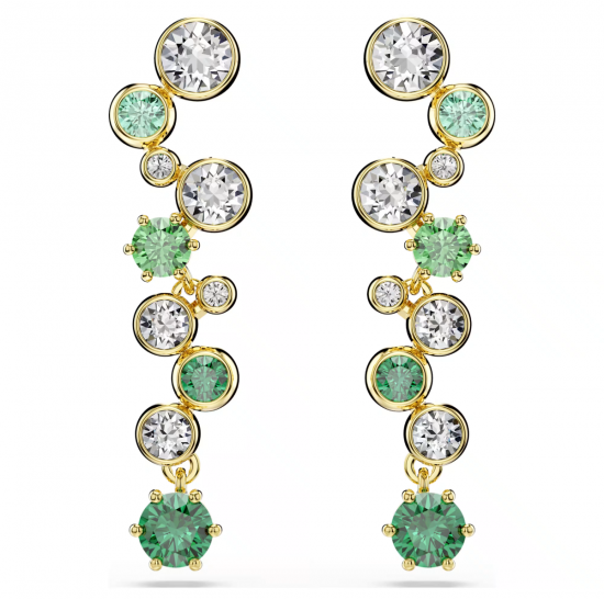 スワロフスキー『Constella ドロップピアス グリーンです。 ゴールドトーン・コーティングのメタルには様々なサイズとシェードのクリア・クリスタルとグリーンのジルコニアがプロング・セッティングとベゼル・セッティングで交互にあしらわれています。ギフトにも最適です。