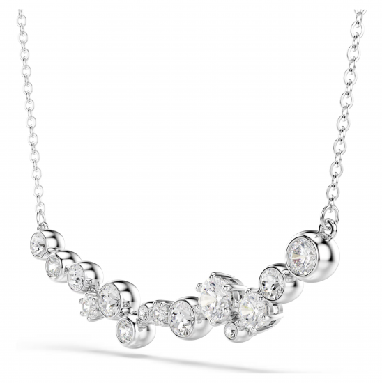 スワロフスキー『Constella ネックレス ホワイト 5722473です。 星空をイメージしたデザインの中央には、様々なサイズのクリア・クリスタルがプロング・セッティングとベゼル・セッティングで輝きます。繊細なチェーンに連なるきらめくクリスタルが、宇宙の神秘をエレガントに物語ります。