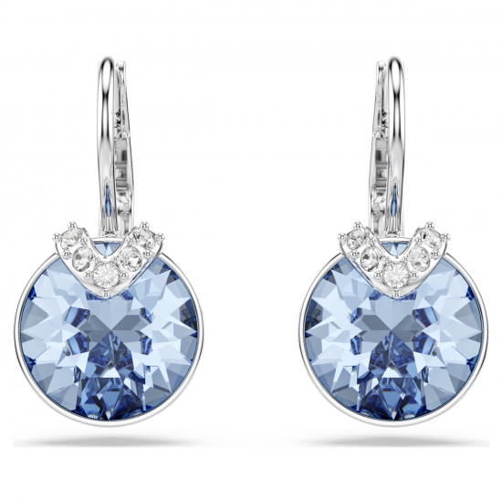 スワロフスキー『Bella V ドロップピアス ラウンドカット ブルーです。ロジウム・プレーティングのメタルにライトブルーのラウンドカットのクリスタルをセットした楽しさにあふれるデザインです。
