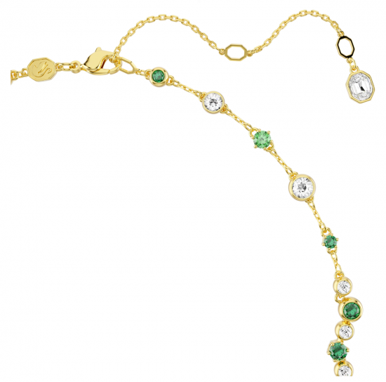 スワロフスキー『Constella Y字型ネックレス ミックスカット グリーンです。T字型のシルエットに、ゴールドトーン・コーティングのセッティングに映えるグリーン系の魅惑的なシェードやクリアトーンのクリスタルとジルコニアを散りばめました。