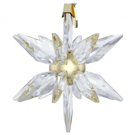 スワロフスキー『Annual Edition 3Dオーナメント 2025です。393面ファセットのまばゆいクリスタルとシャンパンゴールドトーン・メタルでつくられたスターのモチーフにはサヴォアフェールが光ります。ホワイトのグログランのリボンと発売年度の「2025」が刻印されたタグ付き。窓辺やツリーに飾るとお部屋のデコレーションに魔法のような光が灯ります。本品は装飾品であり玩具ではありません。15歳未満のお子様によるご使用は対象としておりません。