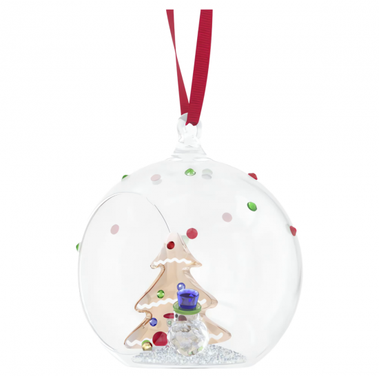 スワロフスキー『クリスタル クリスマス Holiday Cheers ツリーとスノーマン ボールオーナメント 2025です。レッドのグログランのリボンが付いたガラスボールの中にゴールドトーンのツリーと陽気なスノーマンが収められています。全部で763面の精密なファセットが施されており、クリスタル・ロック技法やムーンライト・エフェクトなど特別なディテールがふんだんに使われているマルチカラーの作品です。子どもの頃の思い出がよみがえるデザインで、コレクターズアイテムやご自宅のデコレーションとしてお楽しみいただけます。本品は装飾品であり玩具ではありません。15歳未満のお子様によるご使用は対象としておりません。